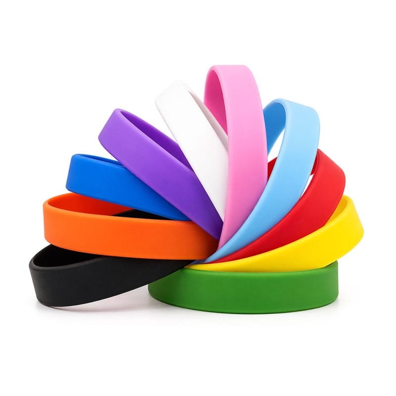Plain silicone wristbands – 10 colours, multiple sizes