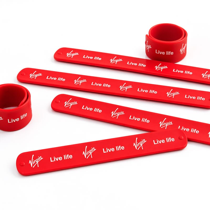 Printed silicone slap bands are a functional, practical promotional product with many applications. From promotions, giveaways, school campaigns and awareness, the bracelets can be branded, playfully ‘snap’ into position, and are easy to hand out. The the smooth silicone finish means they’re comfortable all day, but the real selling point is the snap action,